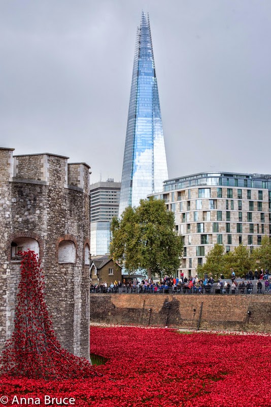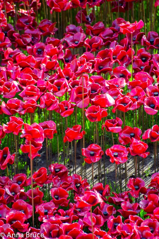 • Una fecha (5 de Agosto de 1914), en la que los soldados británicos se incorporaron al frente. Este año, y desde el pasado 5 de agosto, se han ido instalando miles de amapolas de cerámica que caen de las ventanas más altas de la Torre de Londres, creando un espectacular mar de color rojo. Cada amapola se vende al precio de 31 euros y los fondos recaudados se destinan a diversas instituciones benéficas.