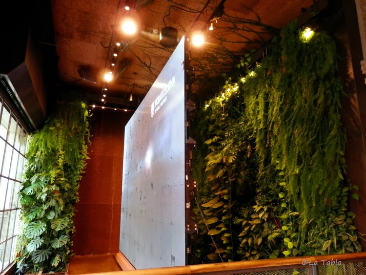 En noviembre de 2011 publiqué una entrada en la que recogía una noticia sobre este jardín creado por Vertical Garden Design en Barcelona. Se inspiraron en las cascadas como punto de comienzo natural para el diseño de las plantas que se incluirían en el jardín vertical. Fisuras y grietas en la roca, agua corriendo, además de esculturas y otros elementos para ofrecer contraste. Se pueden ver begonias, helechos de diferentes variedades, así como pequeñas y grandes aráceas; todo ello con el propósito de imitar esa vegetación que suele crecer en los acantilados de costas, cascadas y cuevas. El efecto es realmente fabuloso.