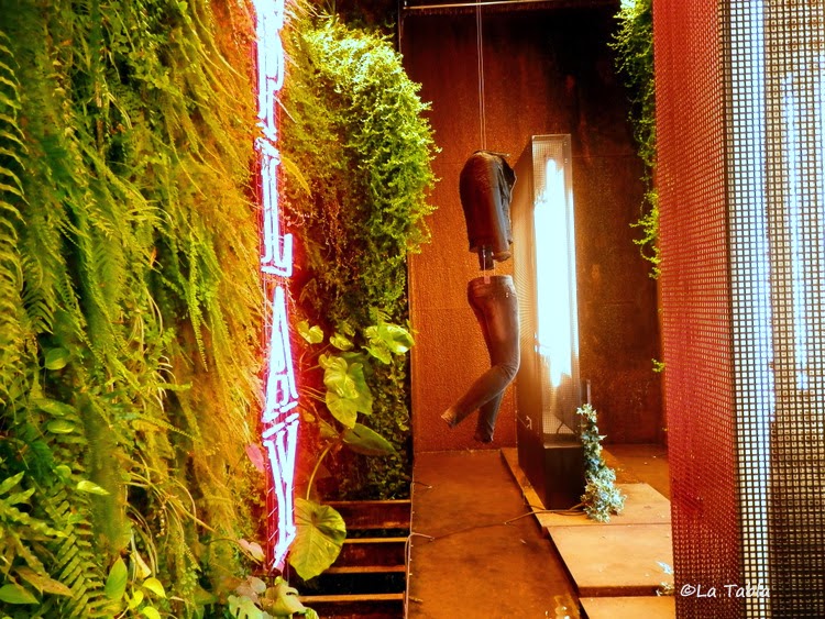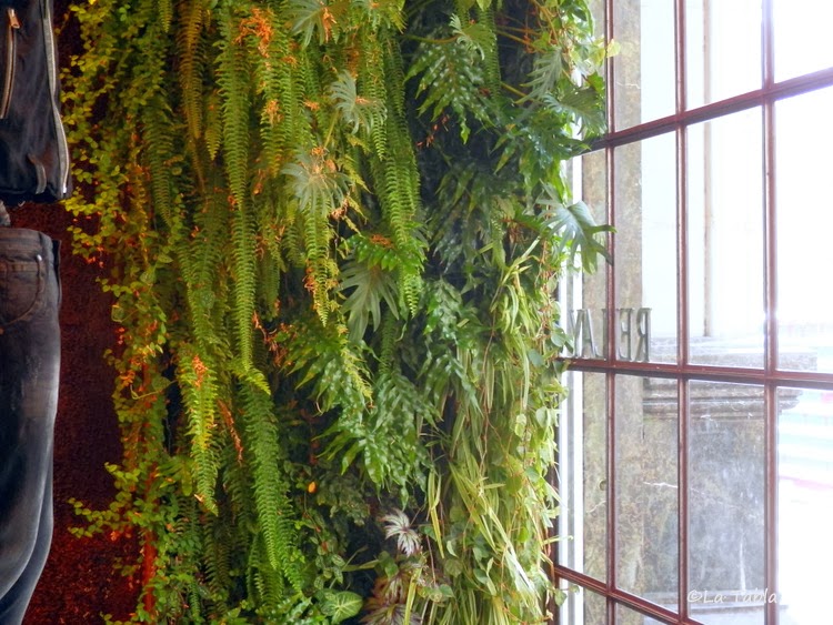 Lo era entonces, a juzgar por las fotografías publicadas en su día, y doy fe de que lo es ahora, porque el miércoles pasado, en un viaje relámpago a esa ciudad, tuve la oportunidad de verlo y, sin ánimo de hacer publicidad a esta firma de ropa, tengo que admitir que la tienda es espectacular, el jardín vertical y el del patio interior están bien conservados, supongo que algunas bajas inevitables, pero es realmente gratificante sentirse rodeado de tanta vegetación exuberante en un espacio cerrado en medio de la urbe.