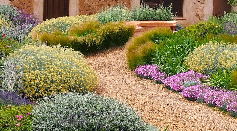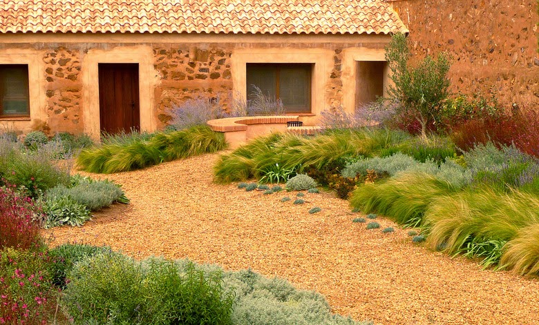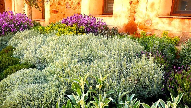 Hay curvas y contracurvas en ese jardín que parecen llevar la silueta de las montañas hasta este jardín. Composiciones que recuerdan los matorrales de poca altura, característicos de la degradación del bosque mediterráneo; esas formaciones arbustivas denominadas La Garriga (principalmente tomillo, coscoja, romero y espartal) propias de la región. El color y el movimiento tampoco faltan.