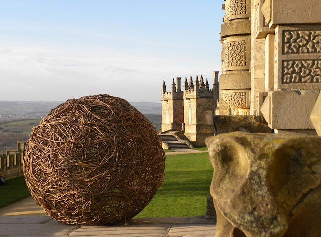 Para imitar las figuras fluidas que la naturaleza nos revela, las esculturas de Rachel Carter son moldeadas mediante el uso de ramas de sauce, que conserva con aceite de linaza. Crea remolinos con ese mimbre y lo entrelaza y teje sobre una estructura esférica de acero dulce soldada. Ninguna esfera es igual, ni en la forma ni en el tamaño, pero todas resultan especialmente atractivas dentro del entorno donde se ubican.