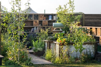 Plantación mixta promoviendo el policultivo y las «tres R» de la sostenibilidad (reducir, reutilizar y reciclar) ayudan a mostrar que un espacio tan reducido como una terraza pueden ayudar a combatir el cambio climático y proporcionar sustento y santuario para la vida silvestre.