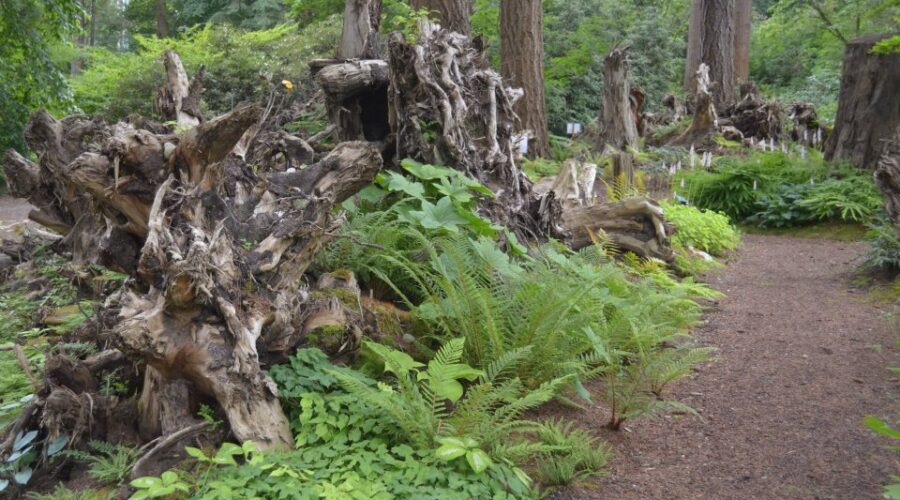 Stumpery es una característica del jardín de la época victoriana, que se crea apilando tocones y troncos de árboles muertos