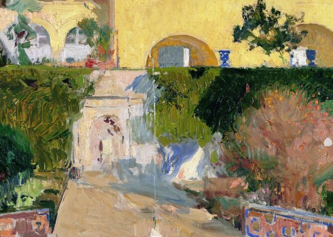 Cómo no iba a volver a la Alhambra. A la Alhambra se vuelve siempre. El pintor valenciano Joaquín Sorolla (1863-1923) viajó por primera vez a Granada en 1909 y volvíó tres veces más. Ahora, parte de su obra regresa a la Alhambra. Y lo hace gracias a la exposición temporal que acaba de inaugurarse en el Museo de Bellas Artes de Granada (Palacio de Carlos V. Conjunto monumental de la Alhambra y el Generalife): Sorolla. Jardines de Luz
