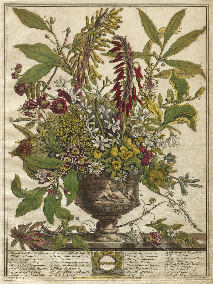 Twelve months of flowers,1730 • Catálago de plantas de Robert Furber • Detalle de noviembre