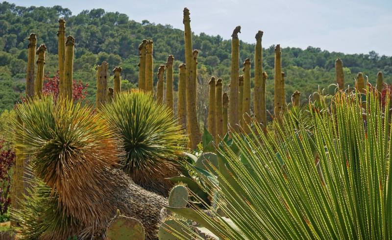 Destacan sus espléndidas colecciones botánicas que comprende más de 7.000 especies de múltiples géneros. En el jardín de cactus se combinan ejemplares columnares, grandes candelabros de varios metros de altura, con especies globulares dispuestas en alguna zona formando conjuntos de cientos de ejemplares.