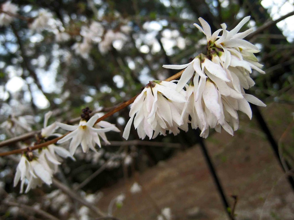 En el jardín, Abeliophyllum distichum (white forsythia o forsythia blanca) se comporta como un arbusto rústico y muy resistente al frío (-15°C), generalmente libre de plagas y enfermedades. Es ampliamente cultivado por el interés que ofrece la lluvia de flores fragantes de color blanco que surgen de los tallos desnudos a finales de febrero y principios de marzo, presentándose como auténticos heraldos de la primavera.