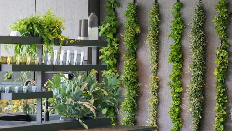 Mucho más sofisticadas son las paredes frontales que se aprecian en el jardín British Council Garden – India: A Billion Dreams, diseñado por Sarah Eberle. Esas floridas paredes están insertadas con piedras semipreciosas en patrones intrincados.