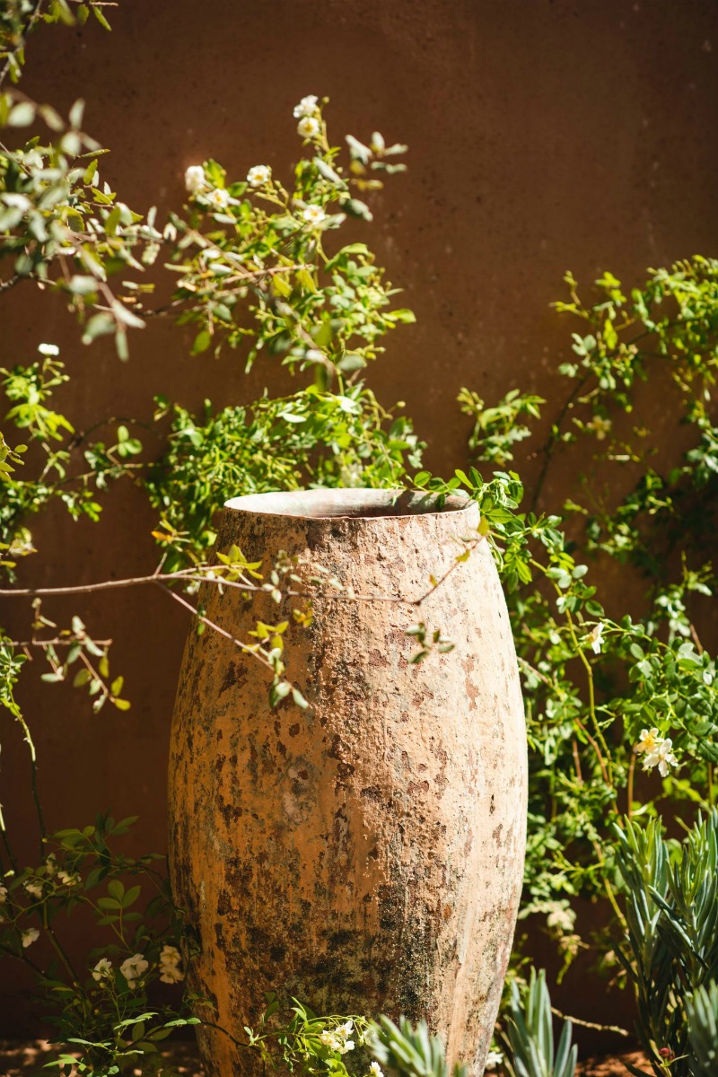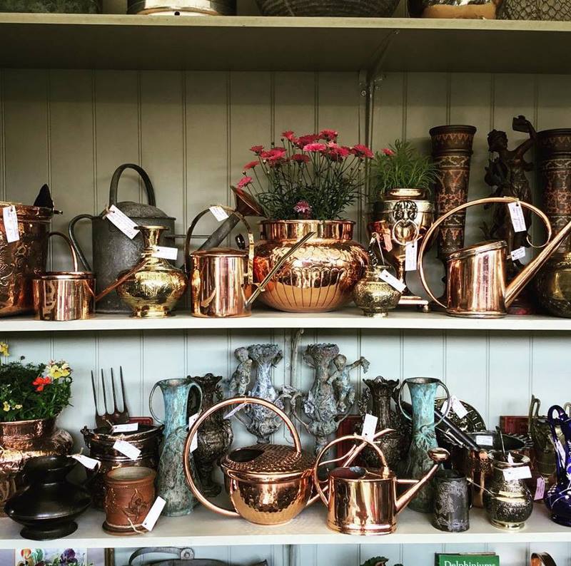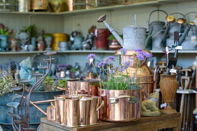 También vamos a encontrar complementos de jardinería donde predomina el bronce, o rincones de trabajo con mucha maceta de barro.