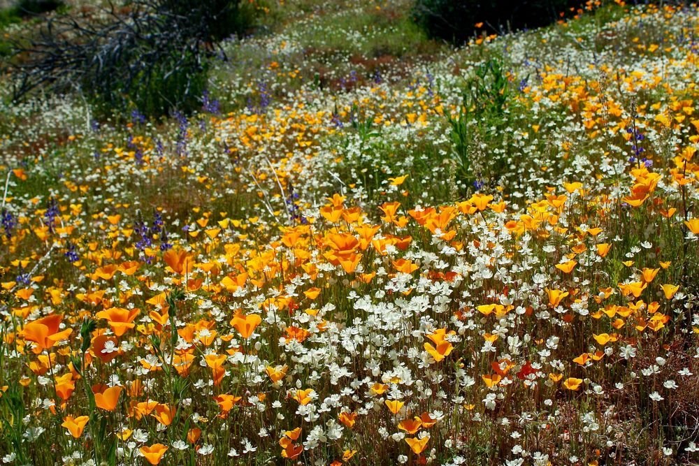 Hace un año hablaba en el blog de los paisajes de flores silvestres de la especie Eschscholziacalifornica, la flor del estado de California y conocida como amapola de California. Mostré imágenes de la espectacular floración de amapolas de California en Antelope Valley California Poppy Reserve, una reserva protegida por el estado de California, Estados Unidos, que se encuentra en el desierto occidental de Mojave, a una altura que oscila entre 90 a 910 metros sobre el nivel del mar y en la zona climática del Desierto de Mojave.