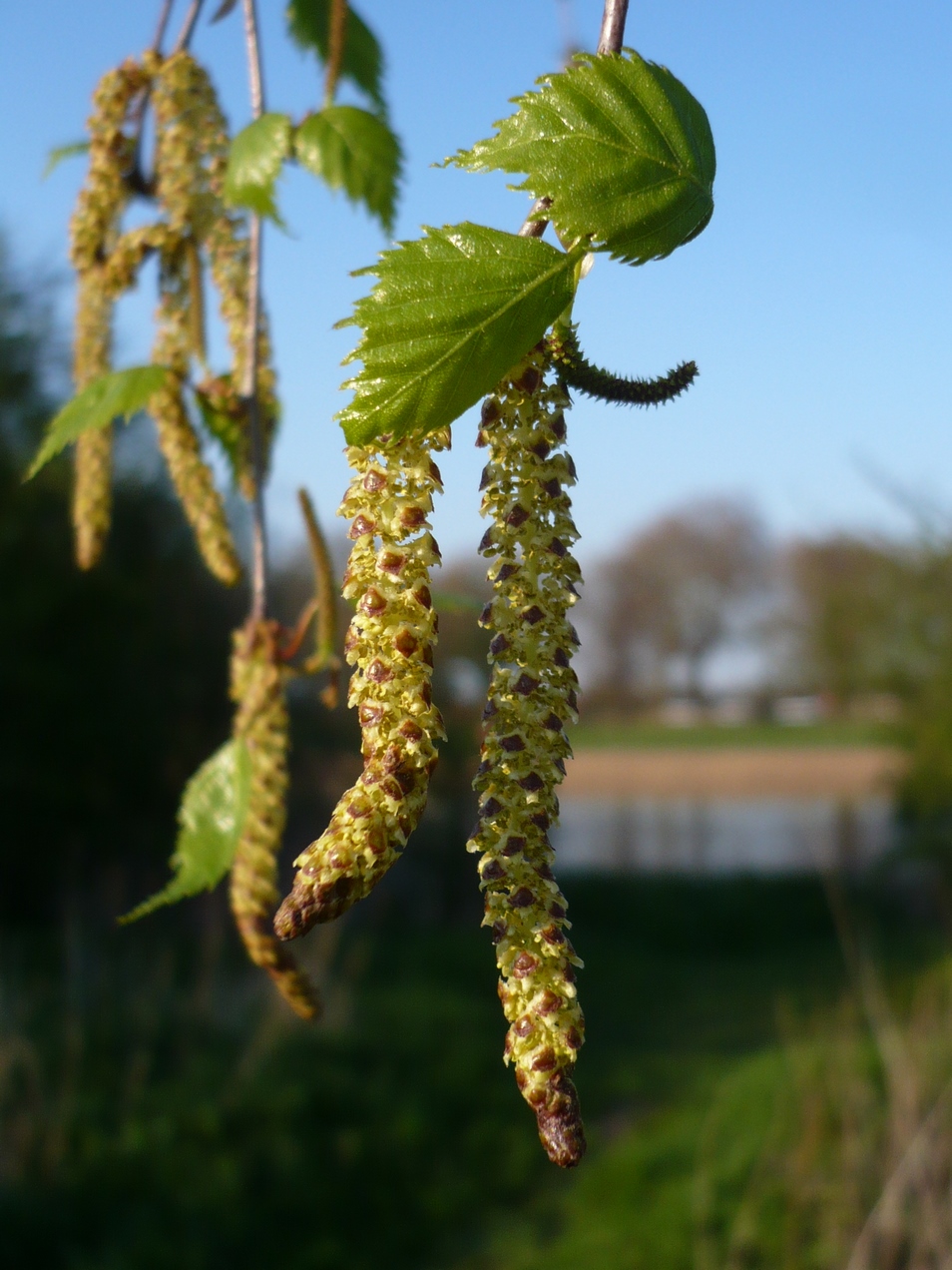 Las flores masculinas surgen entre abril y junio en largos pedúnculos colgantes (amentos)