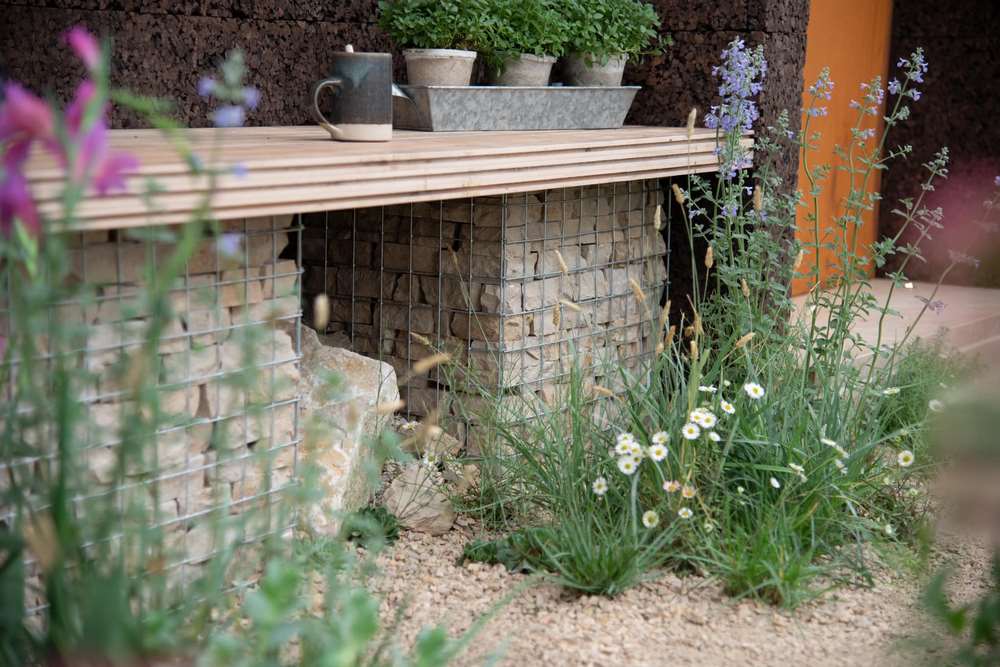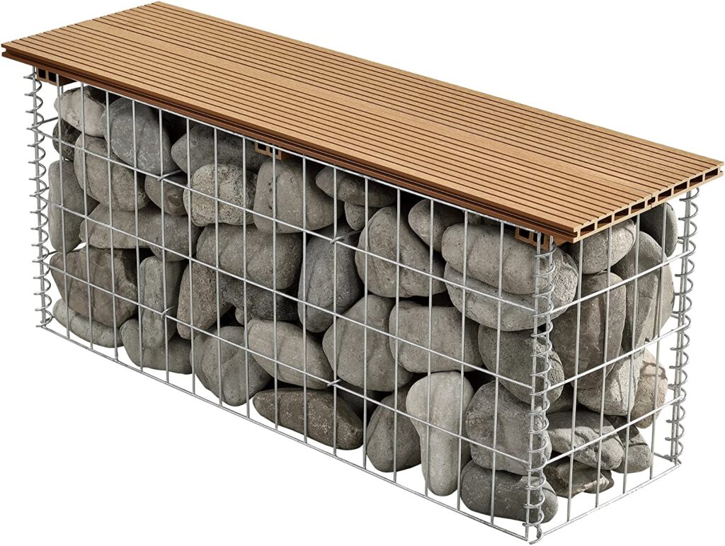 Quienes estén pensando en la posibilidad de incorporar algún tipo de asiento o estantería con gaviones en el jardín, pueden adquirir jaulas o estructuras de acero galvanizado, disponibles en diferentes tamaños, que se montan y después se rellenan con el material deseado. Algunos modelos llevan incluida también la superficie del asiento.