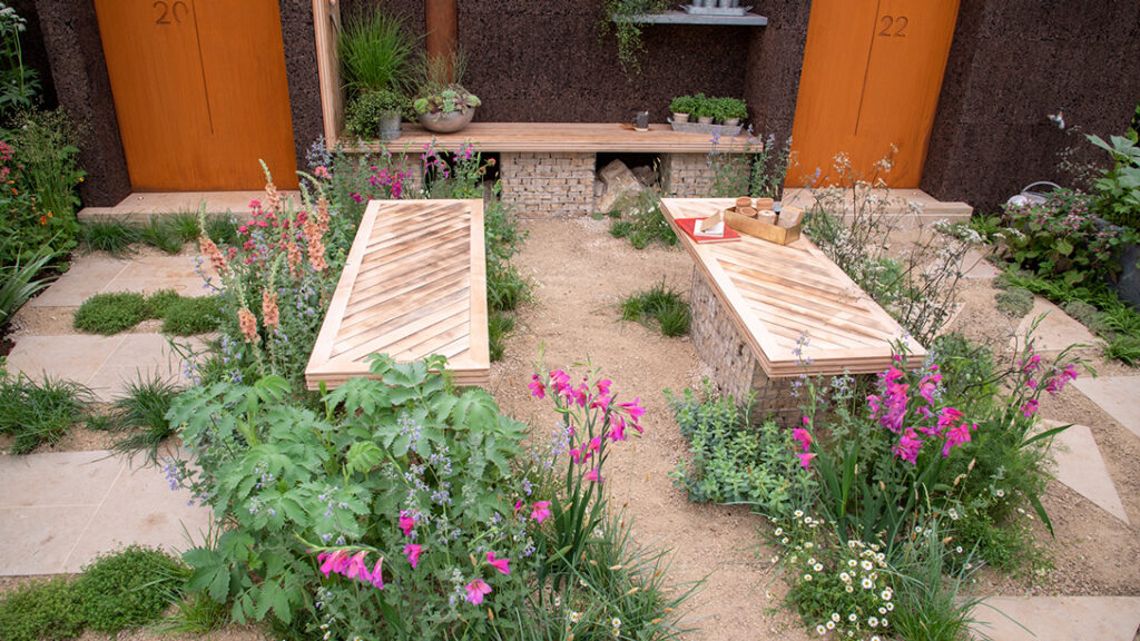 Jaulas o estructuras de gavión para asientos y estanterías de jardín
