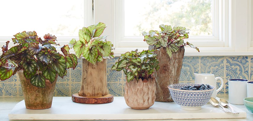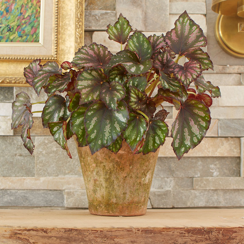 Hojas variegadas con colores brillantes en varios tonos plateados, rosados, morados, rojos o bronce. Son precisamente esas hojas multicolores las que han hecho que las variedades de Begonia del grupo Rex Cultorum sean plantas de interior muy apreciadas desde hace mucho tiempo y ahora redescubiertas.