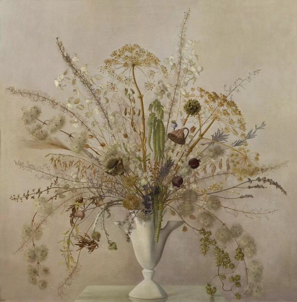 Pero vendrían más bodegones de flores de Gluck inspirados en las composiciones de Constance Spry, como Lilac and Guelder Rose, un ramo impresionantemente grande de lilas blancas combinado con flores de Viburnum opulus y hojas en un jarrón alto; o The Devil’s Altar, una pintura que Gluck realizó en 1932 y ahora se conserva en la Art Gallery Brighton, que representa las características y delicadas flores blancas que cuelgan de los tallos de una Datura, una de las plantas favoritas de Constance Spry.