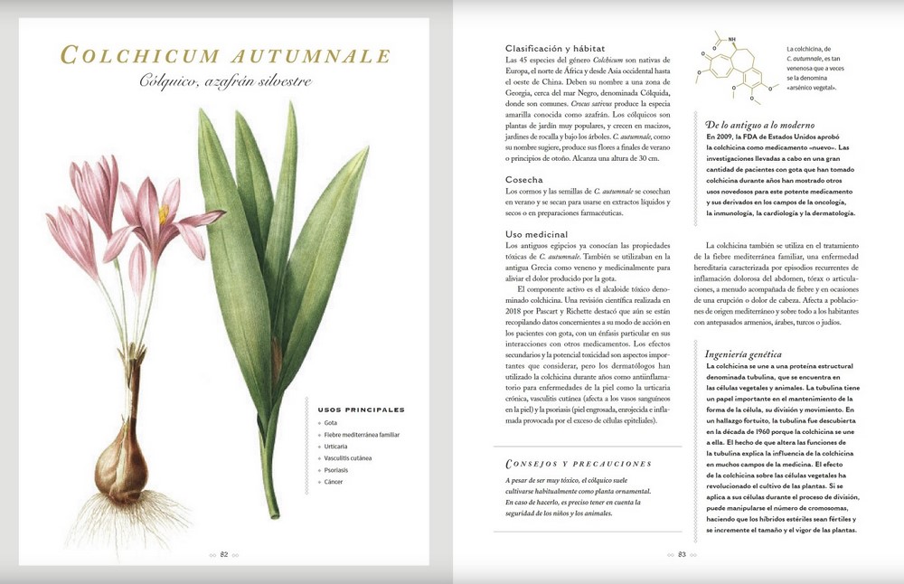 Hay que destacar que el libro está lleno de anécdotas y curiosas pinceladas de conocimiento sobre cómo se cultivan, cosechan y utilizan esas plantas medicinales. Cada entrada describe