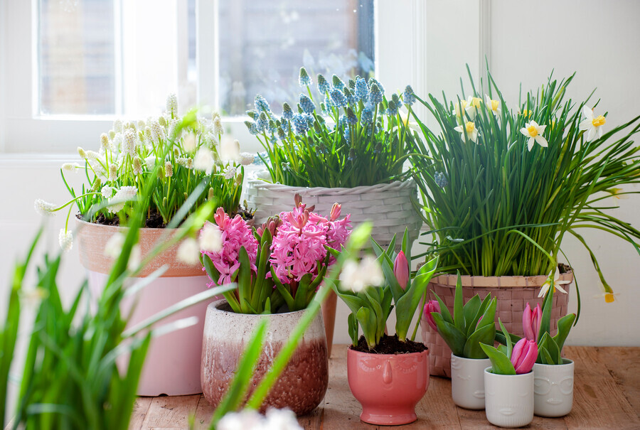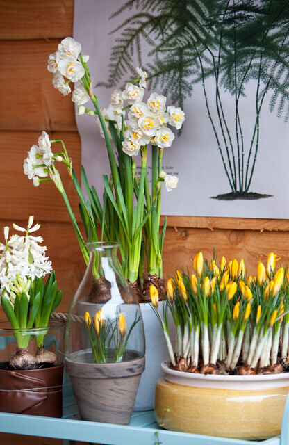 En los centros de jardinería se pueden encontrar diferentes variedades y especies de bulbos forzados de flor de primavera que se presentan en macetas. Los géneros más habituales son los jacintos (Hyactinhus), tulipanes (Tulipa) y narcisos (Narcissus). Pero, en algunos casos, también se pueden encontrar otros bulbos primaverales, como jacintos de uva o muscaris (Muscari), tableros de damas (Fritillaria) e iris de tallo corto, también llamados iris enanos (Iris reticulata). La mayoría de los bulbos florecerán de 2 a 5 semanas después de que salgan del frío, anunciando la primavera con sus colores brillantes y dulces fragancias.
