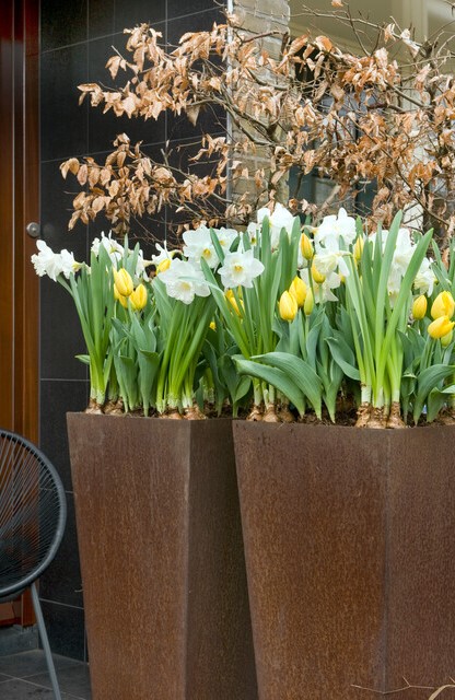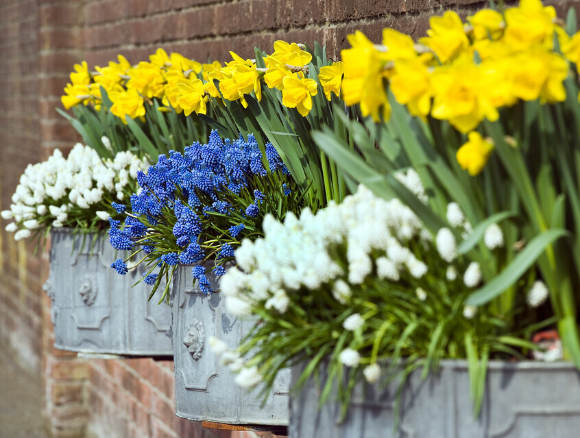 Podemos forzar los bulbos de flor de primavera nosotros mismos, pero es una tarea que tiene que hacerse en otoño. Si no hemos podido hacerlo, o no queremos complicarnos la vida, existe la posibilidad de adquirir macetas con bulbos de flor de primavera que ya vienen forzados, de modo que solo tenemos que esperar a que broten los tallos florales.
