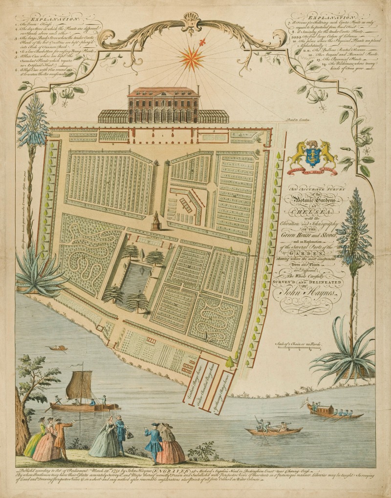 En 1713 el doctor Hans Sloane adquirió de Charles Cheyne una finca solariega de Chelsea, arrendándola en 1722 a la Society of Apothecaries por 5 libras anuales a perpetuidad. La condición que debía cumplirse es que el Jardín se comprometiera a suministrar a la Royal Society, de quien era uno de sus directores, 50 herbarios por año, hasta un total de 2.000 plantas.