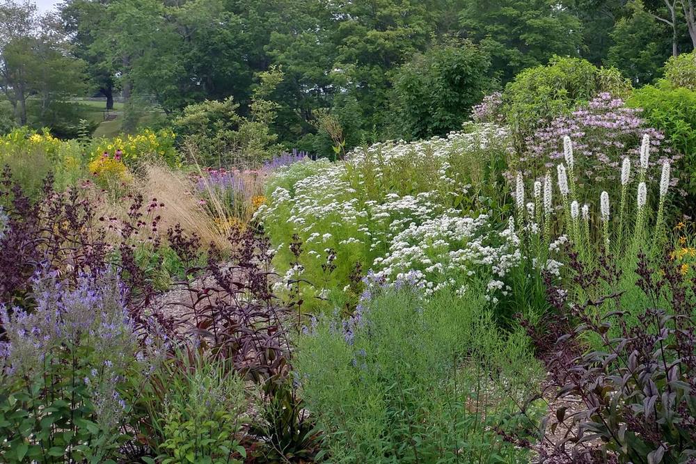 Comenta Noel Kingsbury, que los caminos del jardín serpentean “llevando a los niños a lugares donde, durante gran parte del verano y el otoño, las plantas son más altas de lo que ellos son, en algunos casos, más altas que los visitantes adultos”. Una paleta nativa de Norteamérica, que ofrece esa exuberante plantación y, también, una abundante variedad de especies de floración tardía. Por su parte, James McCain afirma “Busco un efecto de tapiz en todas mis plantaciones, con muchas repeticiones”, lo que ha dado forma a un jardín lleno de armonía, pero aparentemente salvaje, donde las plantas están donde el paisajista quiere que estén.
