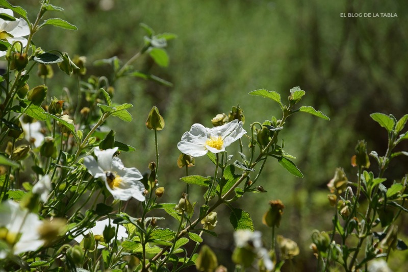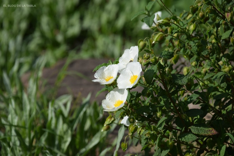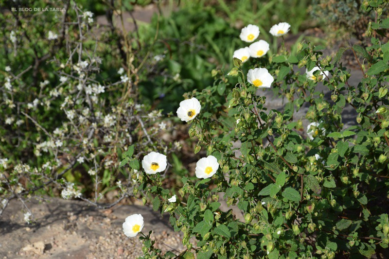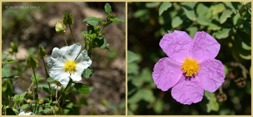 Cuando no están en flor su apariencia puede confundir ambas especies. Pero hay pequeños detalles en sus hojas que pueden ayudar a su identificación. Sin embargo, cuando están en flor ya no hay duda: unas flores son blancas, las otras son rosas. Ambas pertenecen a la misma familia, Cistaceae, y el mismo género, Cistus; ambas crecen en estado silvestre en la región mediterránea y son excelentes compañeras de otras plantas mediterráneas para jardines de bajo mantenimiento. Pero vamos a verlas por separado.