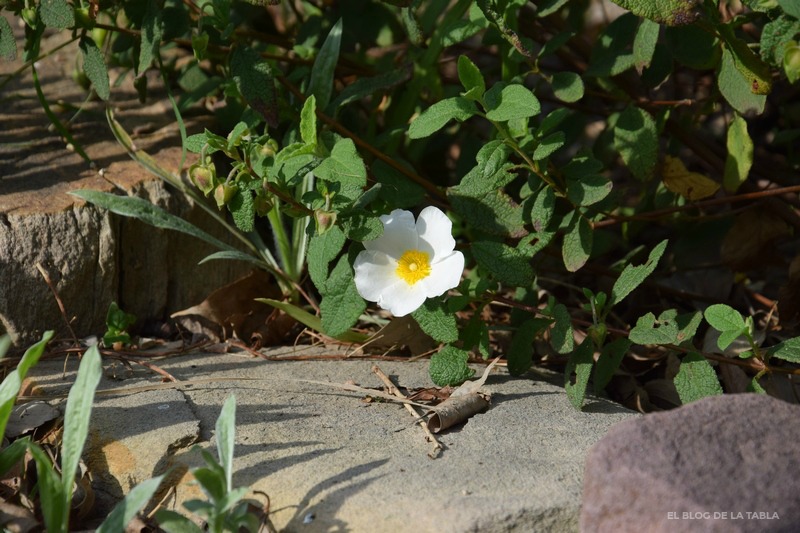 Cistus salviifolius (jara negra o jaguarzo morisco, entre numerosos nombres comunes) es un arbusto que crece desde el nivel del mar hasta los 1.100 metros de altitud, en matorrales, pinares y encinares de la región mediterránea, desde Portugal a Turquía. En la Península Ibérica podemos ver esta planta en todas las provincias. Otra planta mediterránea que nos va a resultar muy útil para utilizar en jardines con criterios de sostenibilidad en el jardín. Sus flores blancas aparecen desde el despertar de la primavera en marzo, hasta julio. Combinan muy bien con otras plantas mediterráneas que les gusta crecer a pleno sol (aunque éstas soportan la sombra) y en suelos ligeros, arenosos y bien drenados.