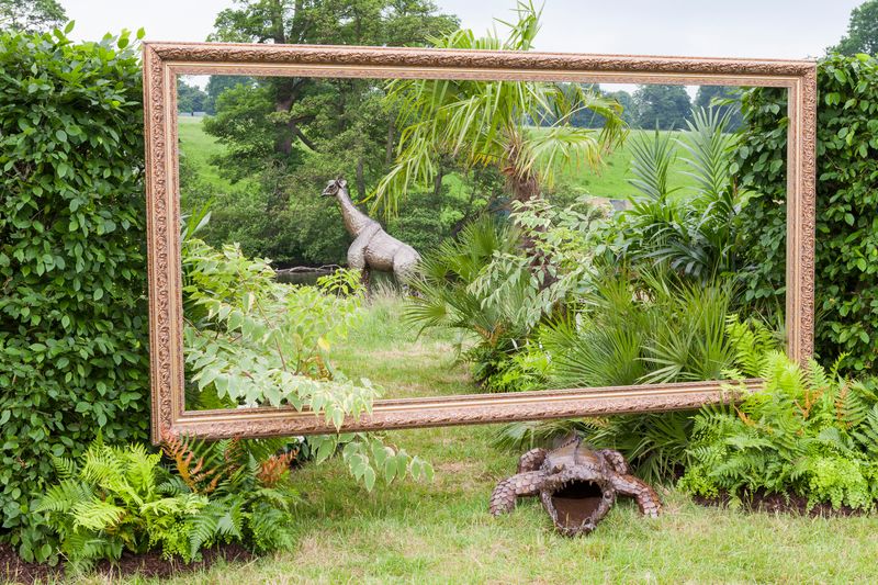 El marco tradicional dorado, de 3-4 metros de longitud, ofrece a los visitantes una vista del paisaje seleccionado del parque de Chatsworth, creando la ilusión de estar mirando una pintura. Se podría decir que es algo así como un trampantojoa la inversa. Claro que el paisaje que hay detrás de este marco está un tanto manipulado, con la incorporación de esculturas exóticas de animales y algunas plantas subropicales y tropicales en primer plano. Es decir, algo de engaño hay, como lo hay en el trampantojo.