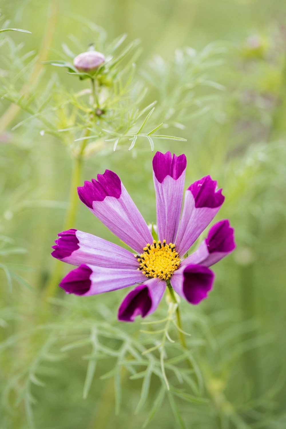 El cosmos de jardín común del que se han obtenido la mayoría de las variedades ornamentales es Cosmos bipinnatus, nativo de México y Guatemala, con flores de color lila.