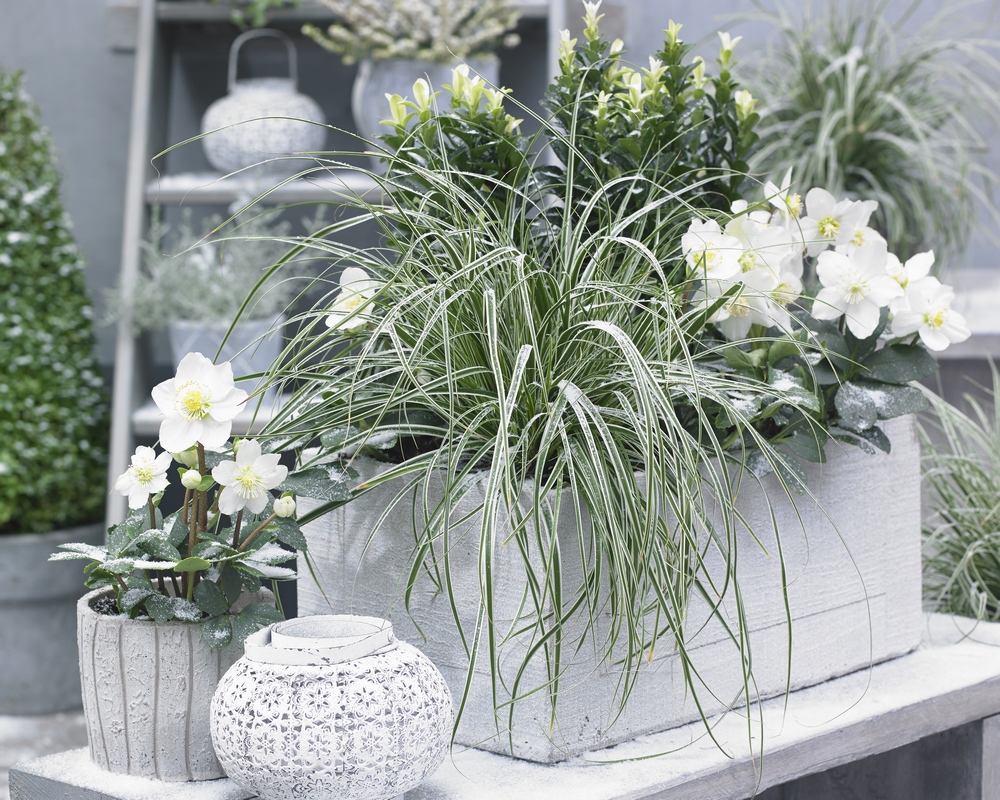 Existe un buen número de especies y variedades de plantas que pueden cultivarse con éxito en maceta, iluminando con su vistoso follaje el invierno y la Navidad en cualquier rincón del jardín, pero sobre todo, en el porche, terraza o balcón. Desde plantas con hojas resplandecientes, vistosas hojas acintadas con rayas blancas, o tallos de color rojizo, a pequeños arbustos con follaje azulado.