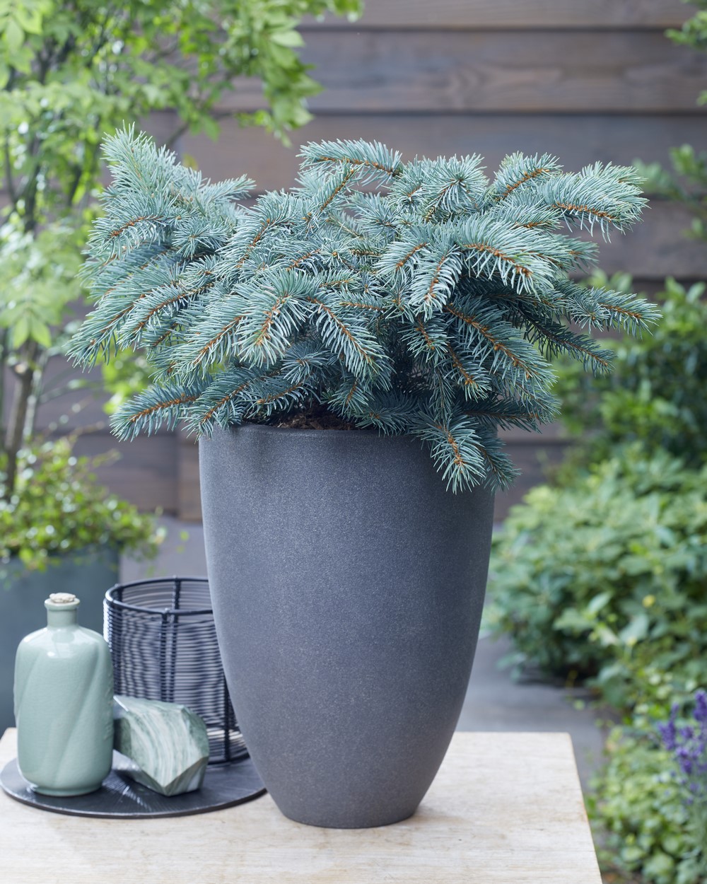Con crecimiento plano y extendido, este cultivar enano de pícea azul o abeto azul (Picea pugens) se caracteriza porque crece hasta unos 90 centímetros de alto y 200 centímetros de ancho. Además, las agujas de Picea pungens ‘Karpaten’ son menos afiladas que la de otras variedades, lo que hace que sea más suave al tacto.