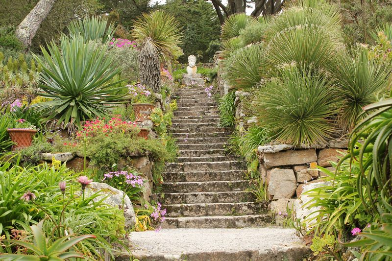 Pero también se cultivan con éxito en algunas áreas de Inglaterra que gozan de climas más benévolos para los requerimientos de este tipo de plantas. Tal es el caso de Tresco Abbey, en Islas Sorlingas; Tremenheere, el jardín de esculturas en Cornualles; y el jardín seco de RHS Garden Hyde Hall.