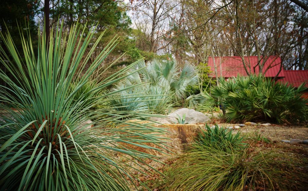 En Riverbanks Botanical Gardens, en Carolina de Sur, se pueden ver crecer juntos ejemplares de Yucca rostrata, palmeras pequeñas del género Brahea y Dasylirion.