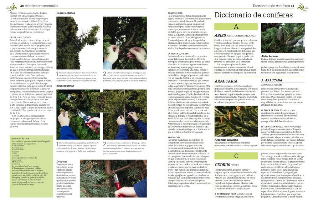 A través las instrucciones e ilustraciones detalladas de cada planta, se descubre cómo cambian los diferentes árboles a lo largo de las estaciones, y cuál es la mejor manera y el momento de podarlos. Además, se muestran las mejores prácticas que pueden aplicarse a diferentes especies, lo que permite obtener una visión experta sobre la jardinería una diversidad de plantas.