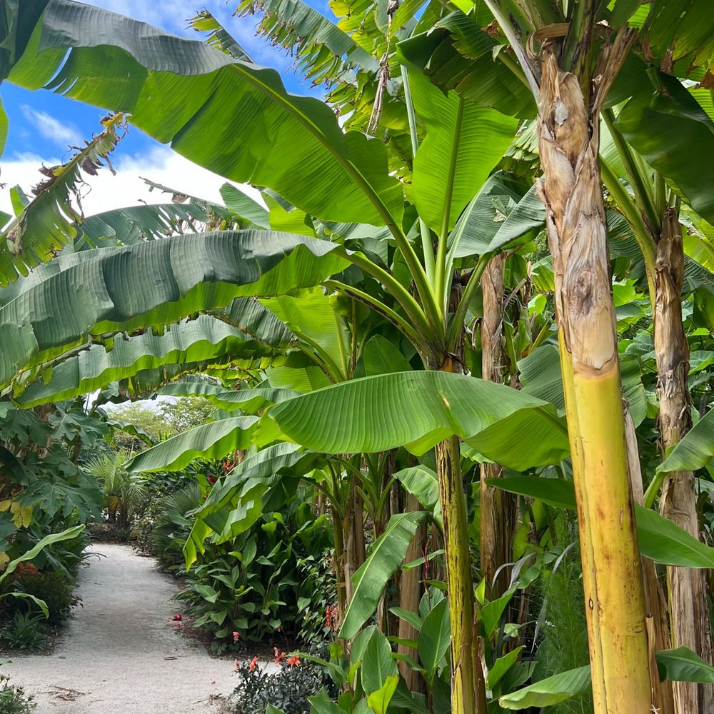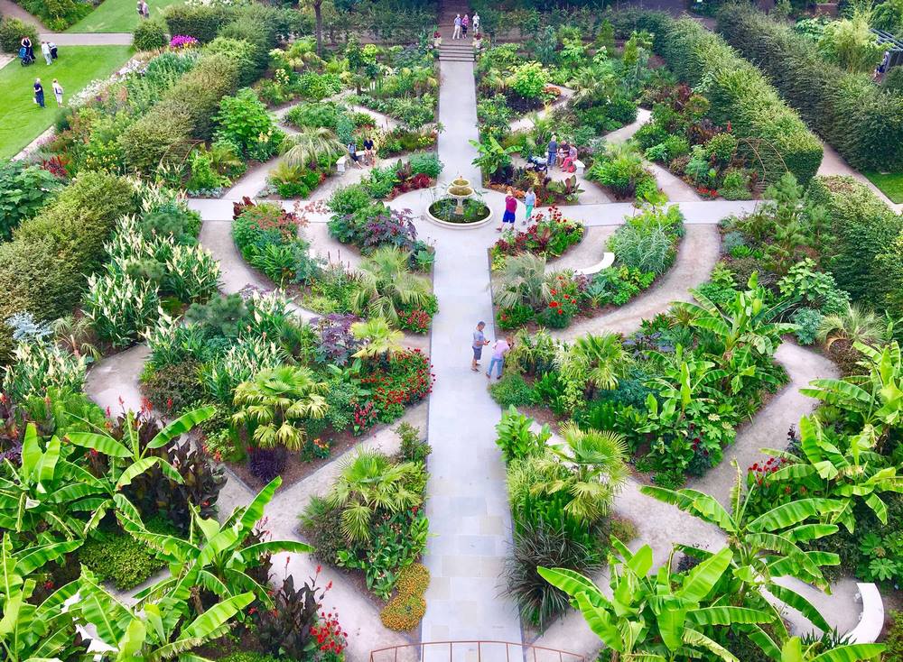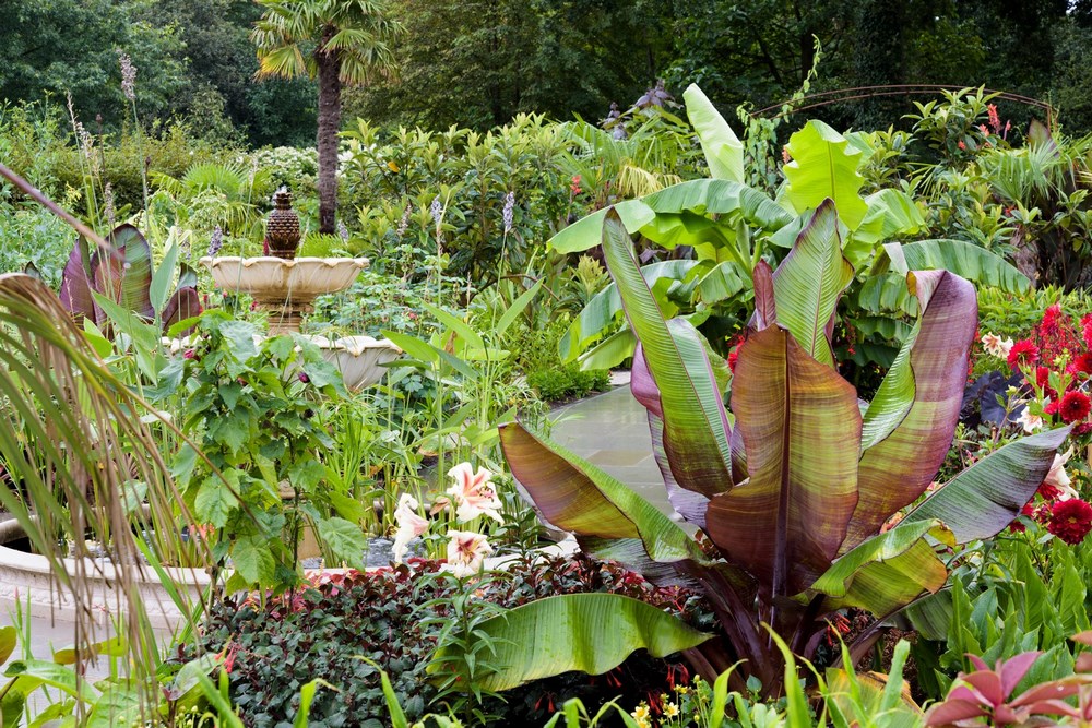 En el Exotic Garden crecen una gran variedad de plantas de hojas grandes, flores vibrantes, especies llamativas de origen tropical que no es habitual ver crecer al aire libre en los jardines del Reino Unido, salvo en algunas regiones privilegiadas.