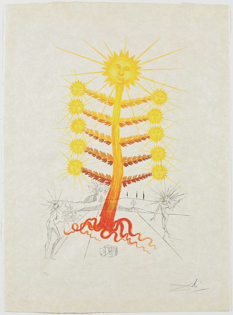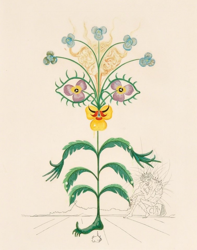 Son, en definitiva, divertidos grabados surrealistas que no acercan a una versión soñadora de la naturaleza y sus fascinantes criaturas, como el girasol de rostro sonriente y ocho hojas, que son brazos (también con rostros), al que Dalí ha dotado de movimiento gracias a los tentáculos que tiene en la base.
