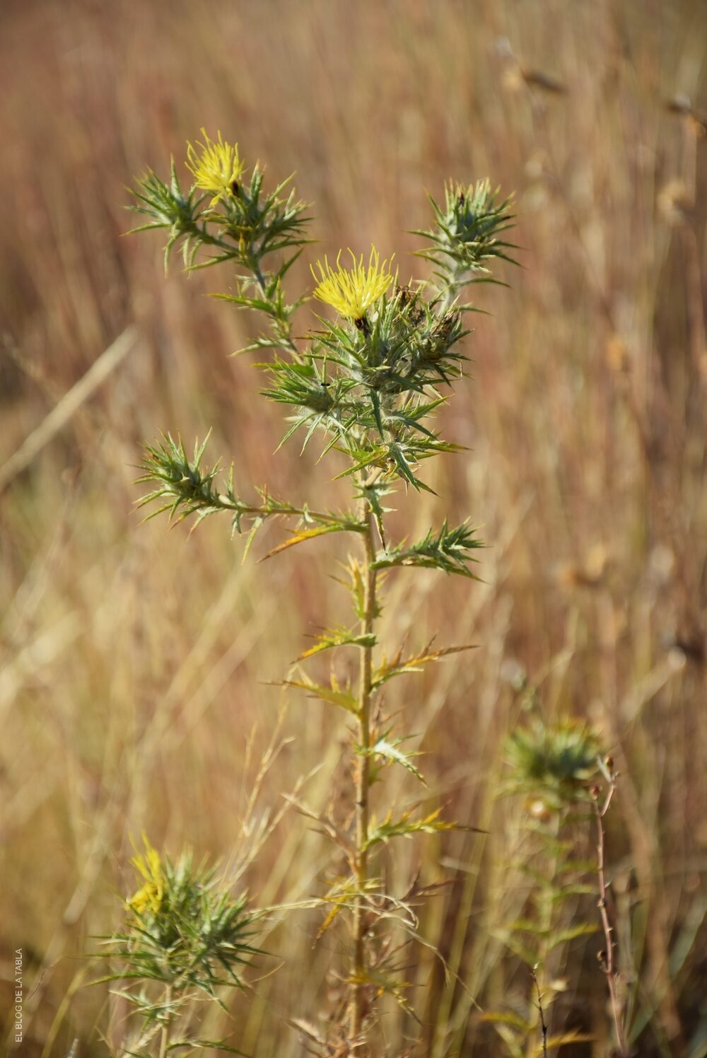 Además del cardo corredor, y mientras otros cardos han ido recogiendo los bártulos, el cardo cabrero o cártamo silvestre (Carthamus lanatus) reparte desde junio hasta agosto sus flores amarillas por los campos de cultivo, bordes de caminos y lugares alterados. Su distribución nativa se encuentra en Europa, Macaronesia, la cuenca del Mediterráneo e Irán.