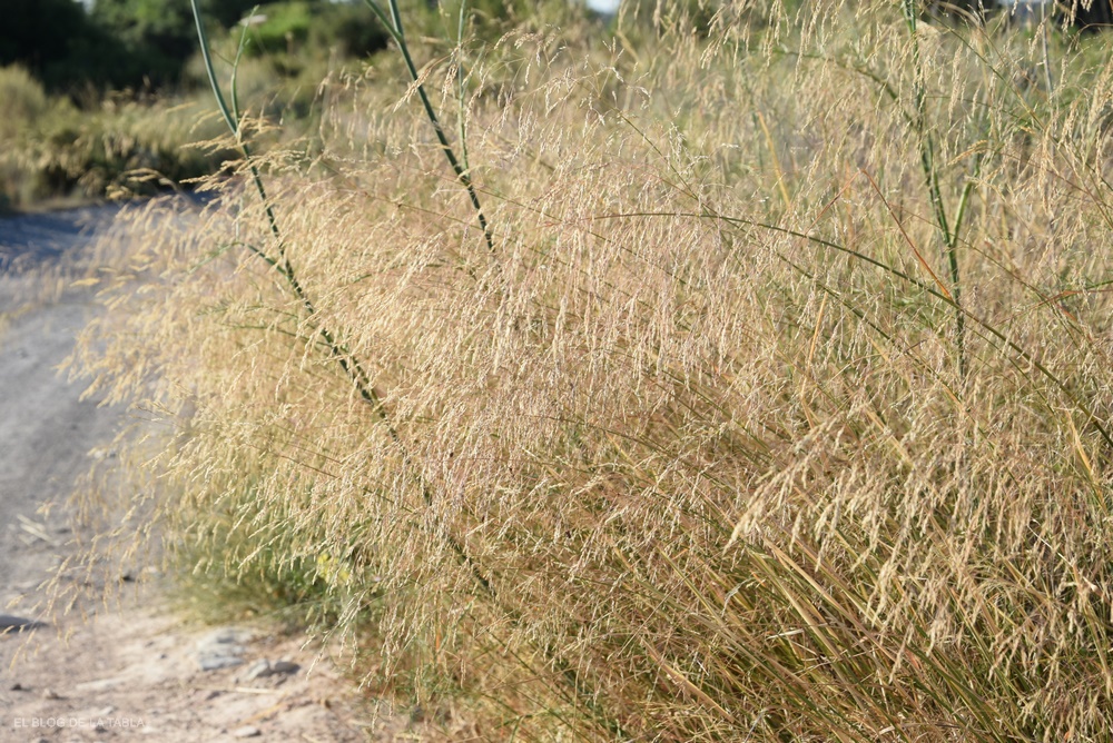 También me encantan las inflorescencias tenues y casi transparentes de Piptatherum miliaceum (parece ser que ahora es Oloptum miliaceum), una gramínea muy común en los márgenes de caminos y carreteras y también en los campos abandonados. Florece durante gran parte del año, especialmente en primavera y otoño, y su distribución natural es circunmediterránea, pero está introducida en otras partes del mundo. Ver más en: Piptatherum miliaceum, una gramínea ibérica con mucho potencial en jardinería sostenible