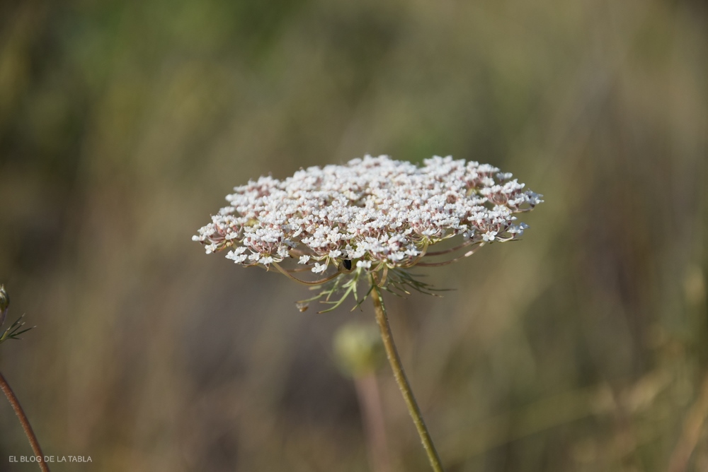 Tenían que acudir a esta cita, como deberían estar en todos los jardines de estilo salvaje o silvestre, las adorables inflorescencias en umbela de umbelas blancas de la zanahoria silvestre (Daucus carota), que surgen entre abril y noviembre. Son maravillosas. Ampliamente distribuida e introducida en todo el mundo, esta herbácea bienal o perenne de corta vida se suelen encontrar en los márgenes de caminos y campos de cultivo abandonados.