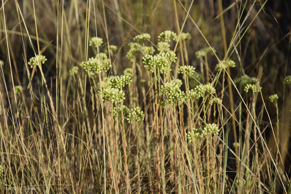 Las hojas suculentas de Sedum sediforme (ahora Petrosedum sediforme) tienen aplicaciones medicinales y suculentas. Pero, por estas fechas, también se suelen ver también las inflorescencias que se forman en la parte superior de los tallos de esta planta, con flores hermafroditas de color blanco-amarillo, que al atardecer se vuelven casi fosforescentes. El origen de esta especie se encuentra en la cuenca mediterránea. Ver también Sedum sediforme: cuando las flores también importan.