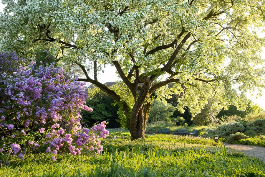 Claudia Gaupp repite en Hermannshof, en una imagen que tiene como protagonista a un imponente manzano silvestre (Malus hupehensis) en plena floración. El árbol, de casi 100 años y probablemente uno de los más grandes de su tipo en Alemania, brillaba a la luz del atardecer, mientras la lila china (Srynga chinensis) en flor que hay a su izquierda pone de manifiesto la envergadura de ese manzano silvestre.