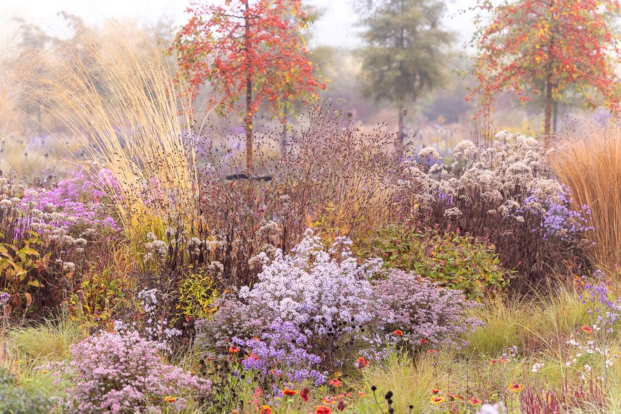 La misma fotógrafa ha obtenido reconocimiento por su captura realizada en Die Staudengärtnerei, el jardín creado en el vivero de plantas vivaces dirigido por Thilo Hofmann y Stefanie Molz en Baviera, Alemania. La foto está hecha en otoño, cuando la niebla suaviza la delicada paleta de colores otoñales que proporciona la plantación.