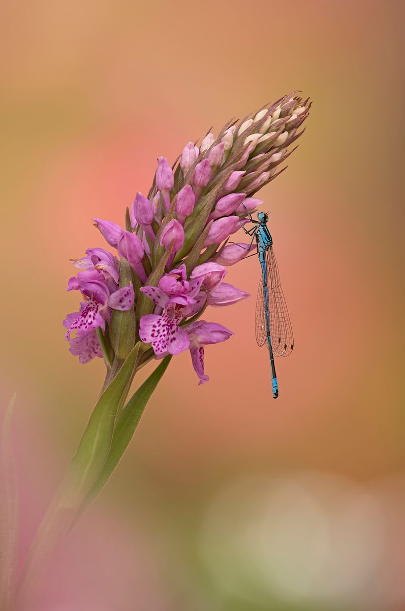 Angie Wallace, fotógrafa británica especialista en foto macro y bodegones, ha obtenido el tercer premio con una imagen compuesta por 17 exposiciones individuales. En foto aparece un hermoso caballito del diablo azul descansando sobre una Dactylorhiza praetermissa (orquídea de pantano).