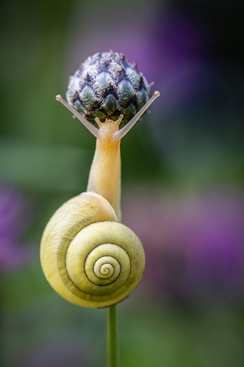 Es absolutamente mágica la captura realizada por la fotógrafa suiza Bernadette Benz. En la foto, realizada en su jardín después de un poco de lluvia, ha sido capaz de capturar ese breve instante de simetría antes de que el caracol se alejara.
