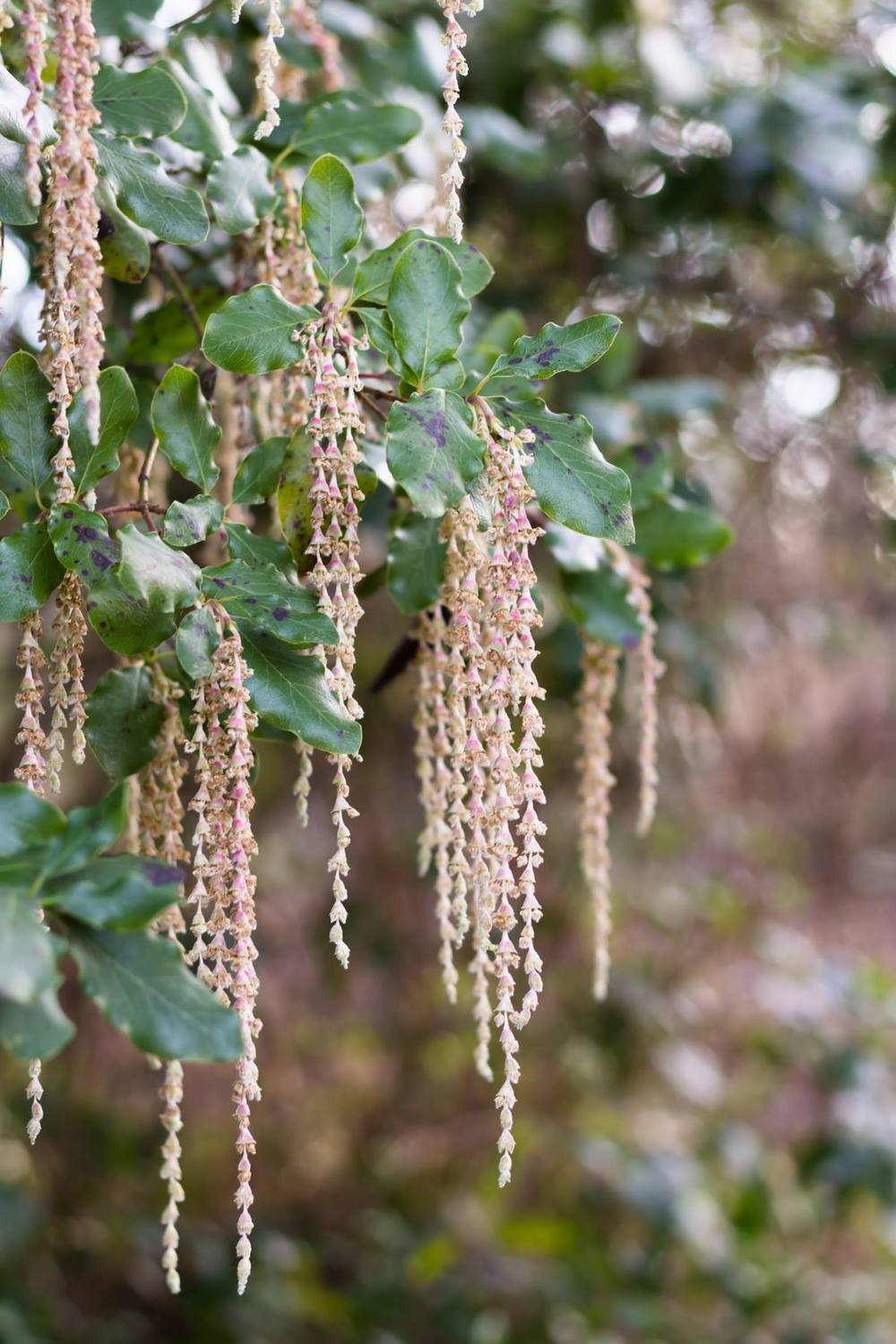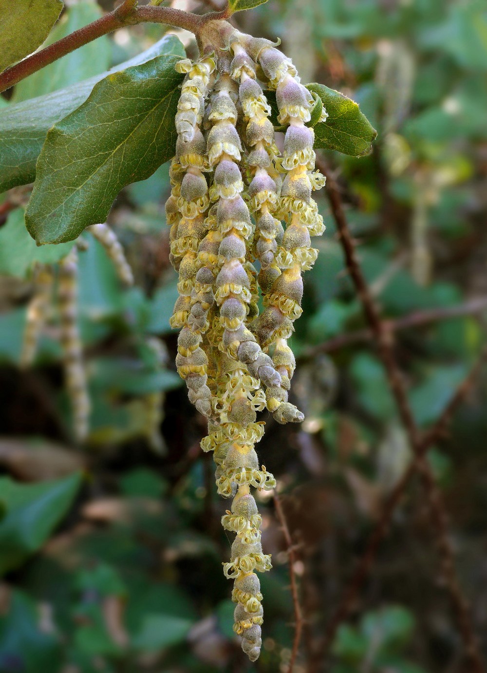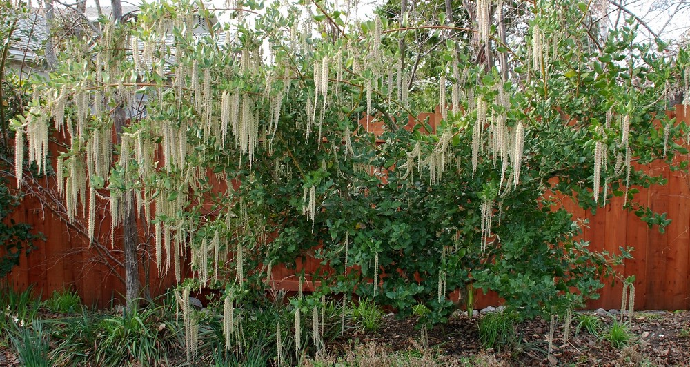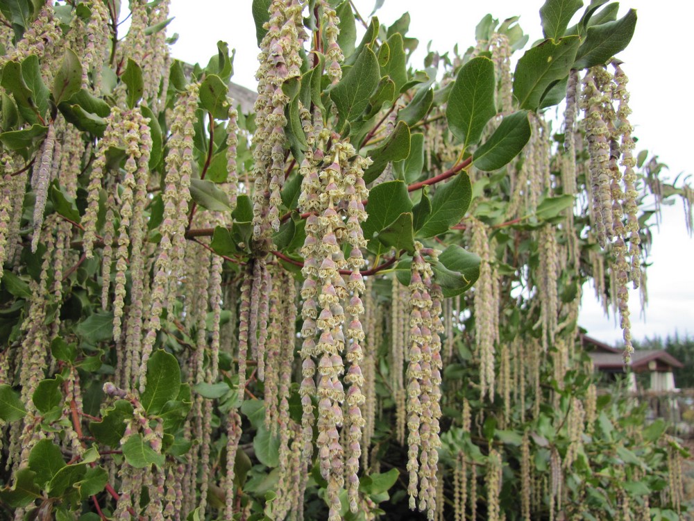Garrya elliptica es un arbusto de clima mediterráneo y bajo mantenimiento, originario de California y Oregón, que se cultiva como ornamental por sus flores reunidas en vistosos amentos que cuelgan en cascada de sus ramas entre febrero y marzo, aportando interés al jardín en invierno.