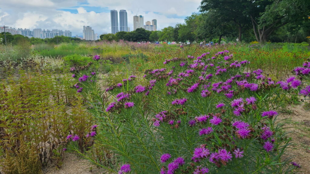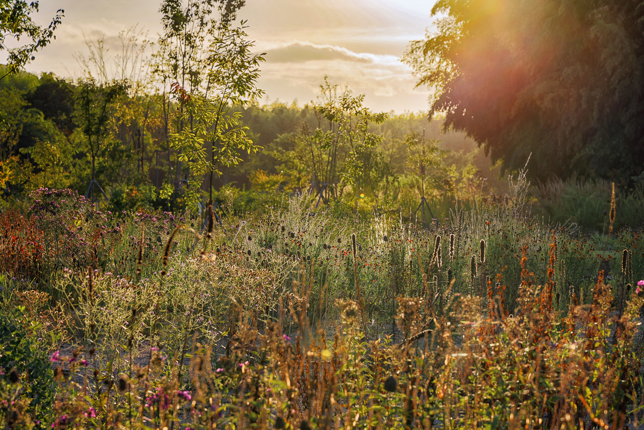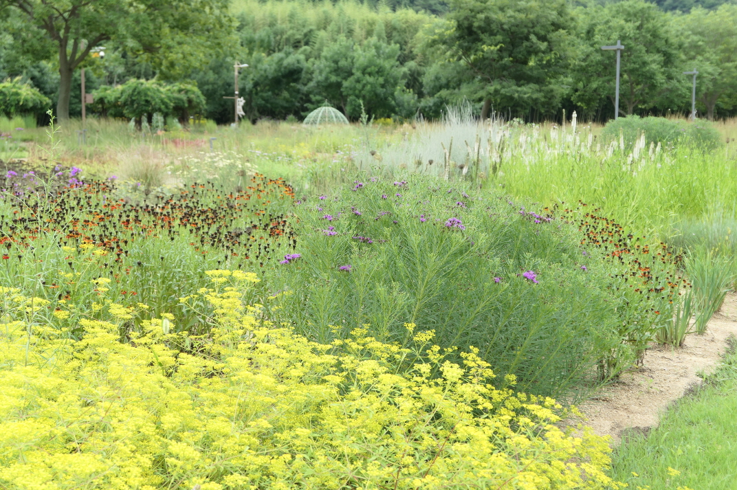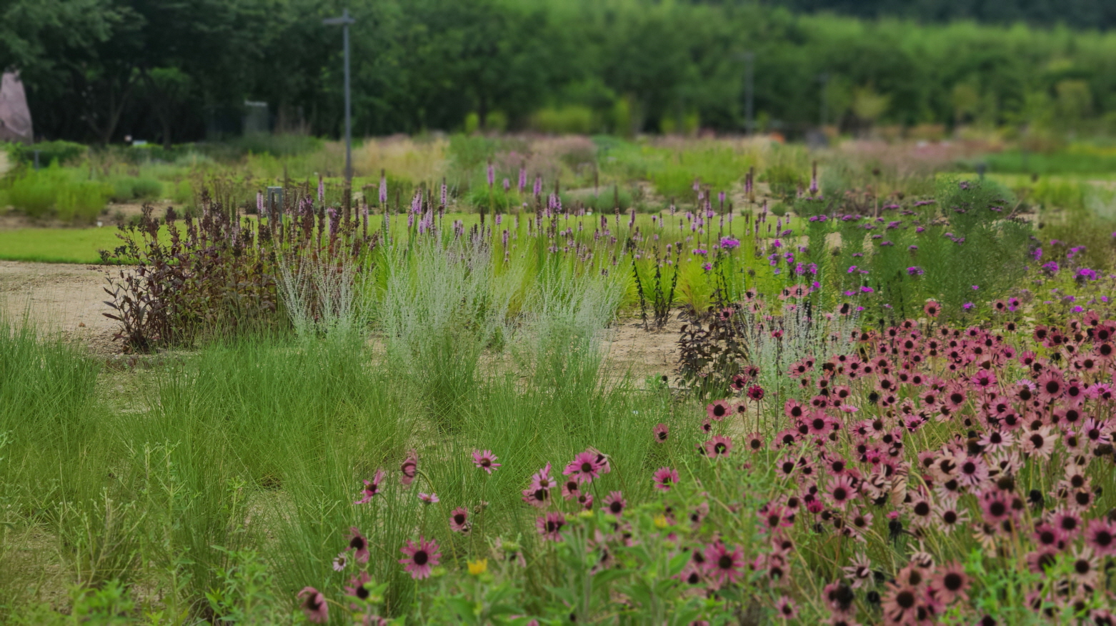 Dentro de una gran diversidad de especies, los visitantes podrán apreciar muchas de las plantas favoritas que Oudolf utiliza en sus jardines, un buen número de ellas nativas de Norteamérica, que evolucionarán y florecerán junto a especies nativas de Corea, como Aster koraiensis , un áster endémico de Corea, con flores de color lila entre agosto y septiembre; y Patrinia rupestris, una planta vivaz que produce inflorescencias de color amarillo brillante en verano, que se distribuye desde Siberia hasta Corea y China.