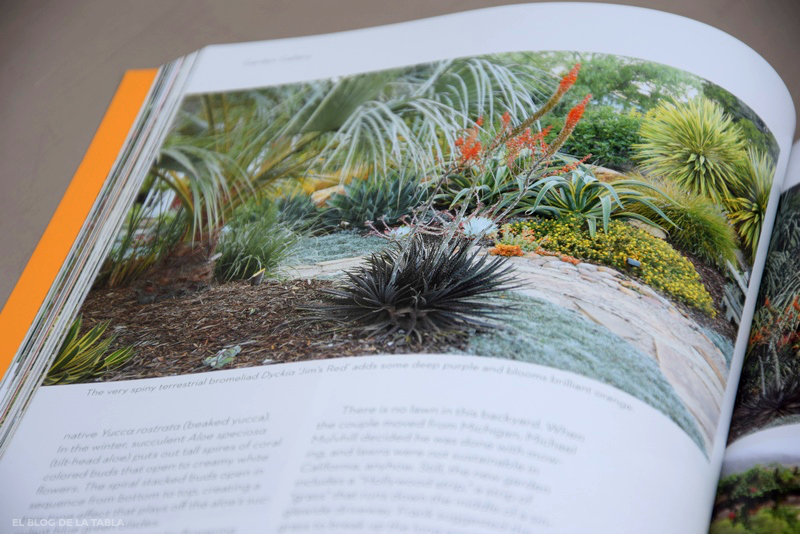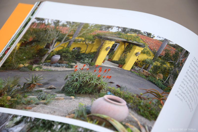 Pero lo que más me interesa destacar es que es autora de California Gardener’s Guide Volume II, el único libro sobre jardines de clima mediterráneo con poca agua escrito específicamente para jardineros domésticos de California. A partir de ese planteamiento discurre el libro, pero lo hace con ejemplos que rompen los esquemas y nos llevan a muchas más especies de plantas de las que en principio podemos imaginar cuando hablamos de jardines sin casi agua. Además de las plantas, el color de elementos duros hará el resto.