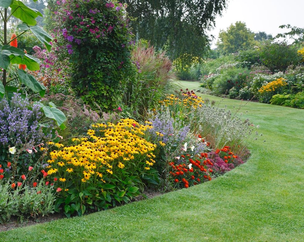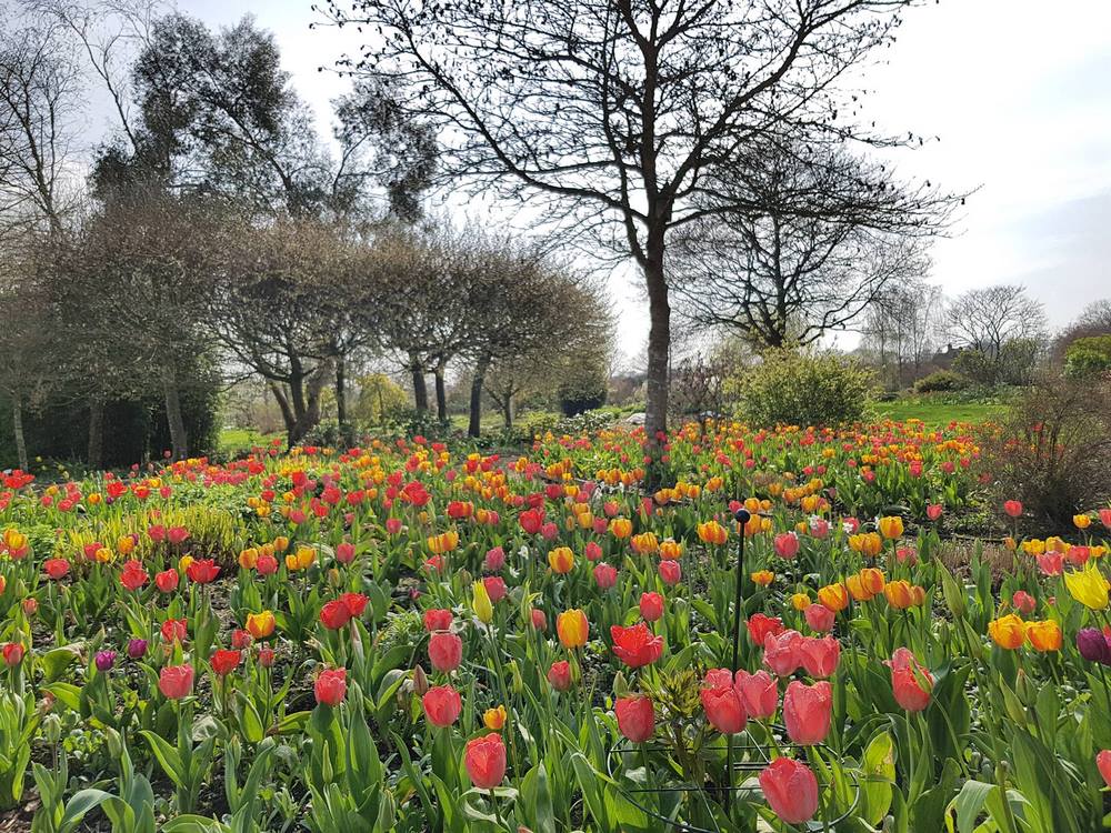 La primavera en esos jardines suele comenzar con una paleta en tonos pastel, que proporcionan las flores de plantas bulbosas como crocus y anémonas plantadas en el llamado Silver Birch Glade; y la deriva de flores de Camassia en el Grass Meadow. Claro que, en la primavera, lo más destacado son las franjas de tulipanes, con más de 10.000 bulbos plantados cada año en otoño. A medida que avanzan los meses y el clima es más caluroso, los colores se vuelven más vibrantes hasta que, finalmente, alcanzan su punto máximo gracias a los colores otoñales de muchos de los árboles plantados en los jardines.