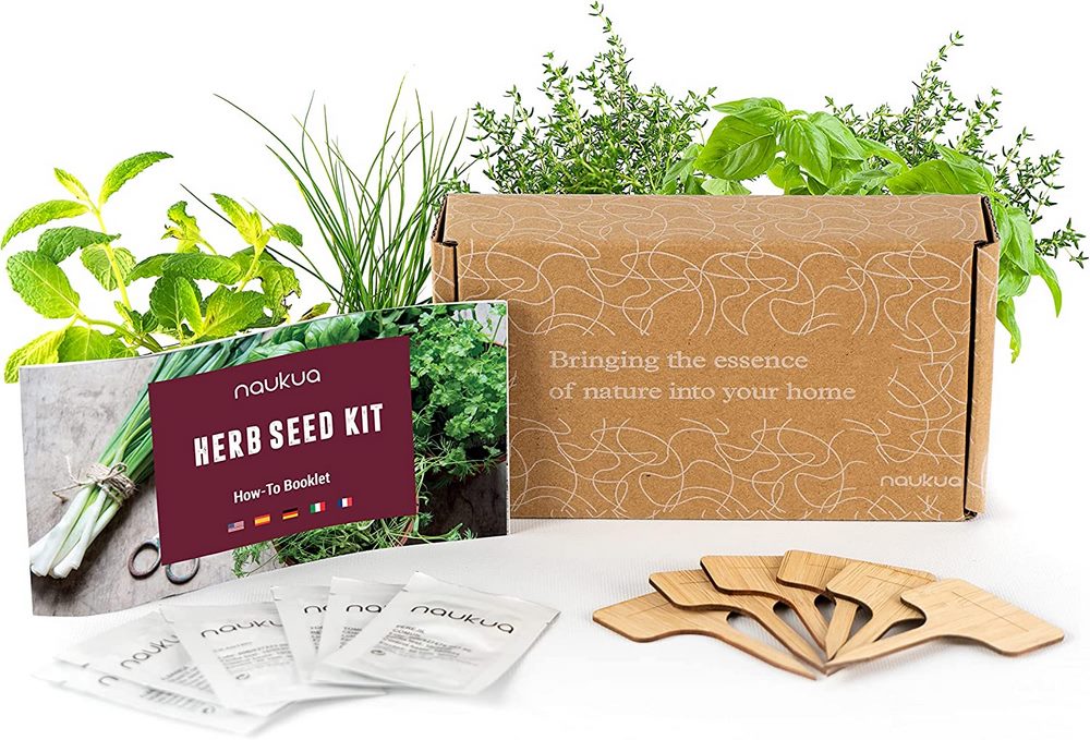 Contiene 6 tipos de semillas aromáticas y para cocinar 100% orgánicas: Tomillo, albahaca, perejil, cilantro, menta y salvia, 6 marcadores de bambú, manual de instrucciones paso a paso y un eBook con recetas con hierbas aromáticas y culinarias.