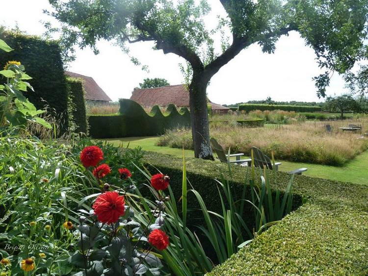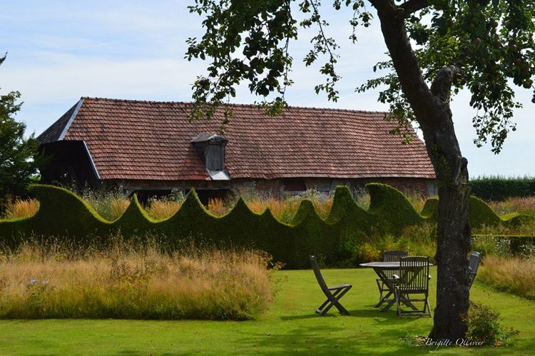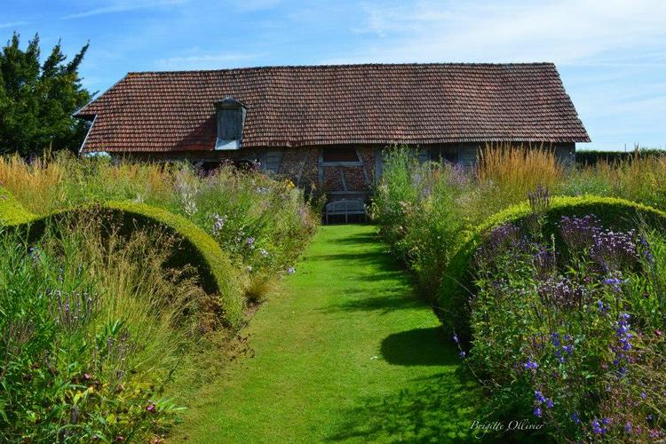 Un jardín perfectamente formado y estructurado, donde cada área tiene su propia personalidad y encanto. En 1996, Patrick y Sylvie Quibel mantuvieron como elemento principal el huerto de manzanos que había cuando compraron una antigua granja con sus dependencias, junto a las 3 hectáreas de terreno que la rodean.