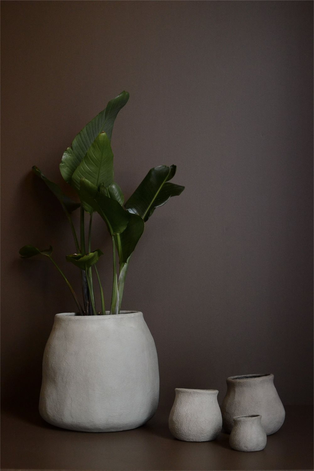 El papel liviano y la forma irregular de estos maceteros crean un hermoso contraste con las plantas verdes que solemos cultivar en el interior del hogar, aunque también se pueden utilizar con flores, e, incluso vacíos son tremendamente decorativos.